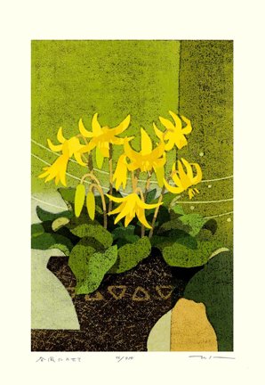 42 Camellia (Camellia japonica) and apple (Malus domestica) by Masahiko Honjō (1963-), woodblock