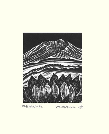 53 Asian skunk-cabbage (Lysichiton camtschatcensis) by Masaki Shibuya (1935-), woodblock