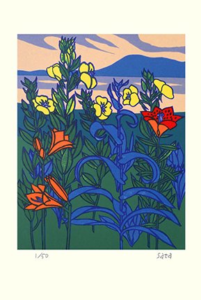13 Paper-flower (Bougainvillea glabra) by Katsu Sata (1914-1993), screenprint, 380 x 565 mm
