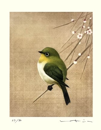 41 Plum (Prunus mume) and Japanese white-eye (Zosterops japonicus) by Tadashi Ikai (1935-), intaglio