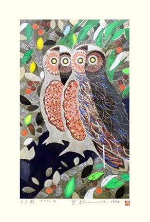 161 Corn poppy (Papaver rhoeas) and turtle-dove (Streptopelia sp.) by Yoshiharu Kimura (1934-), woodblock