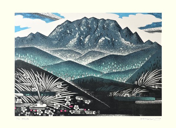 12 Plum (Prunus mume) by Hirokazu Fukuda (1944-2004), woodblock